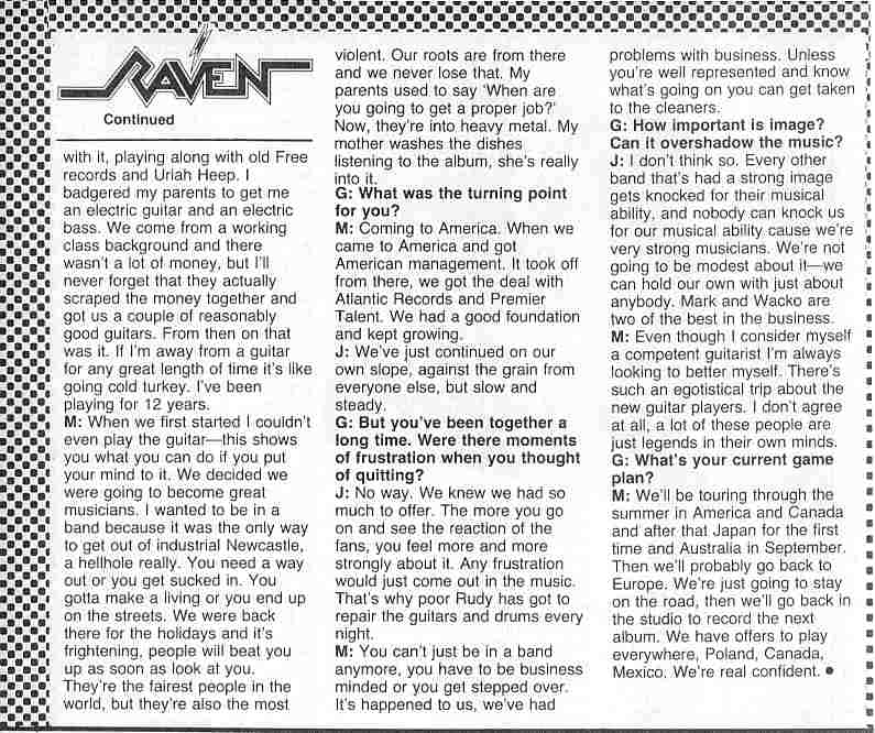 I love the heavy metal band Raven. Thanks to eBay, I’ve managed to pull together a decent collection of old Raven clippings from the 80s.