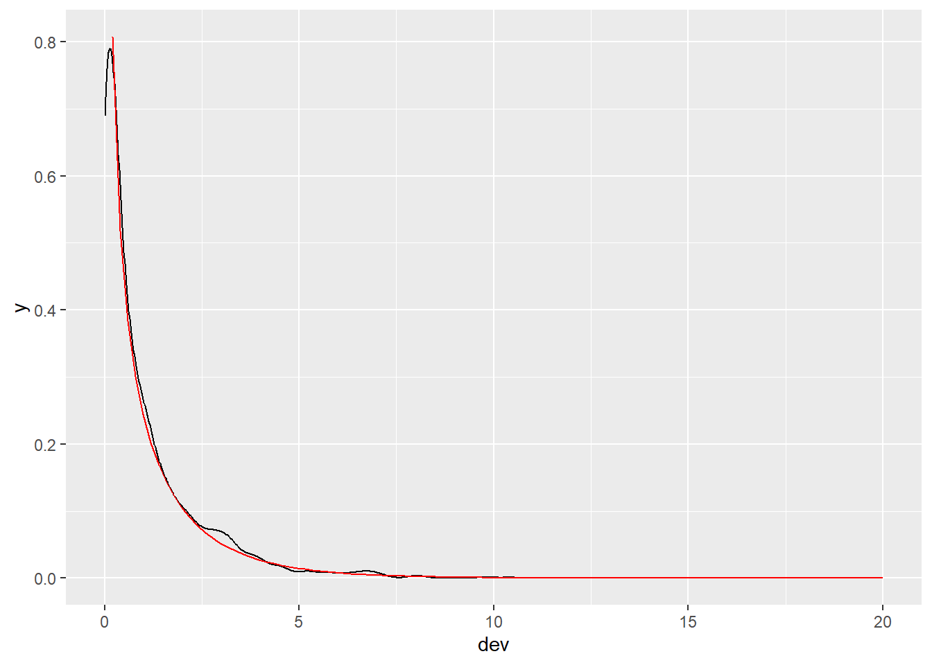 out$Deviance[2]})As expected, the mean of the deviances is about one.