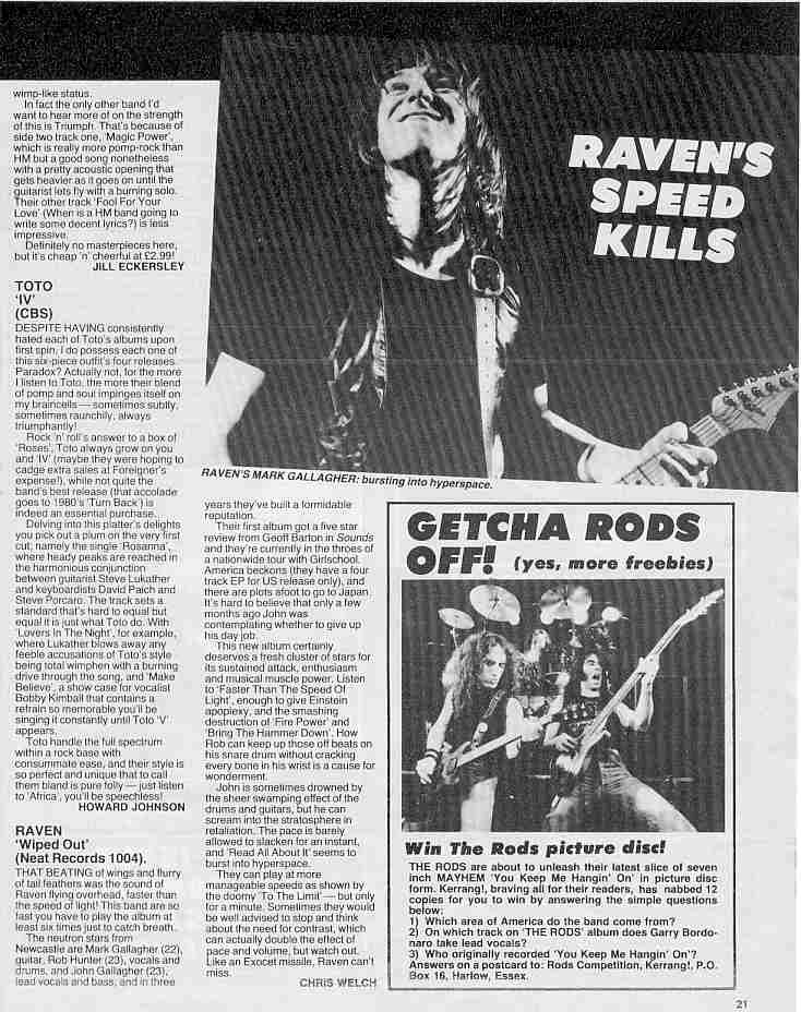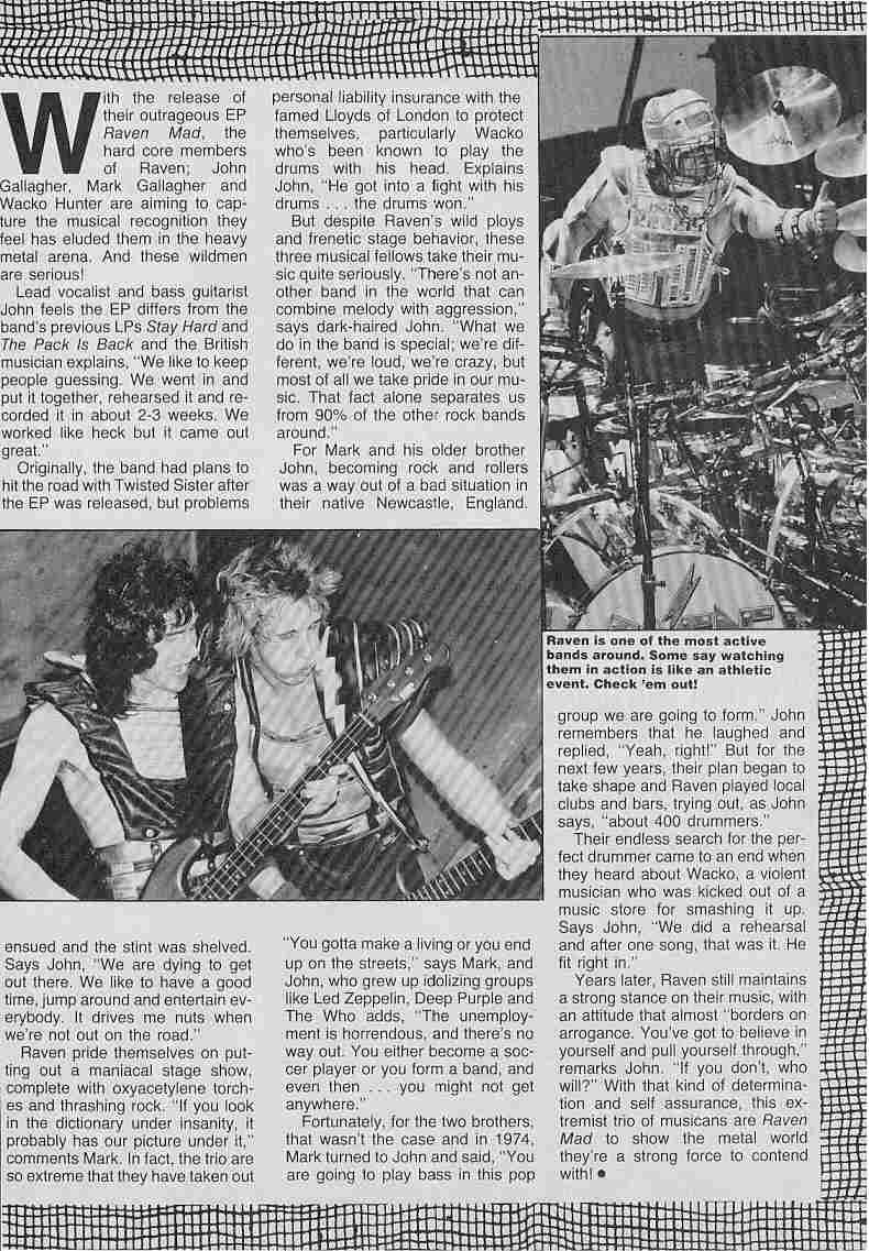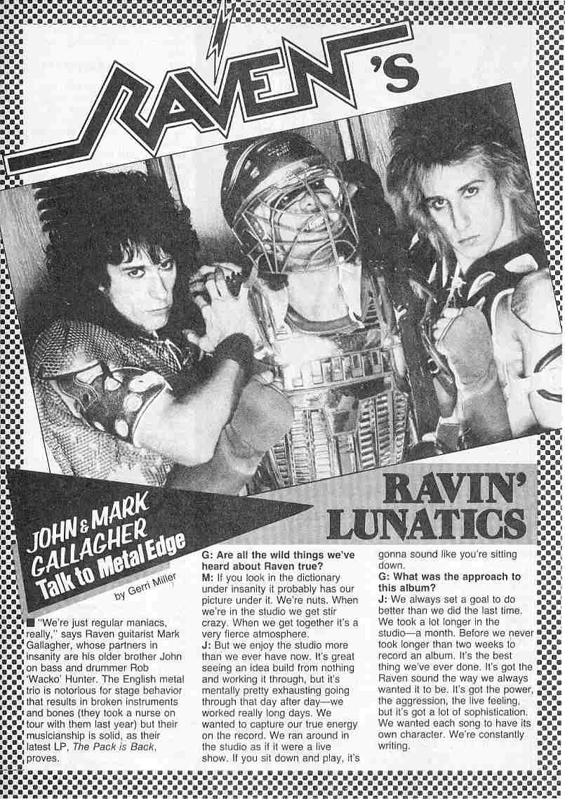 I love the heavy metal band Raven. Thanks to eBay, I’ve managed to pull together a decent collection of old Raven clippings from the 80s.
